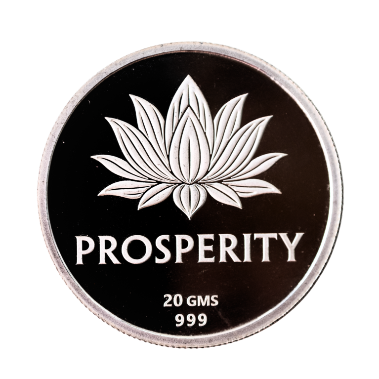 Each Prosperity coin features an embossed lotus motif with the word 'Prosperity'. This symbol represents positivity and abundance. The coins are fine polished, with a brilliant shine and mirror effect. These coins are a meaningful gift and a valuable future investment — easy to store, easy to grow wealth.